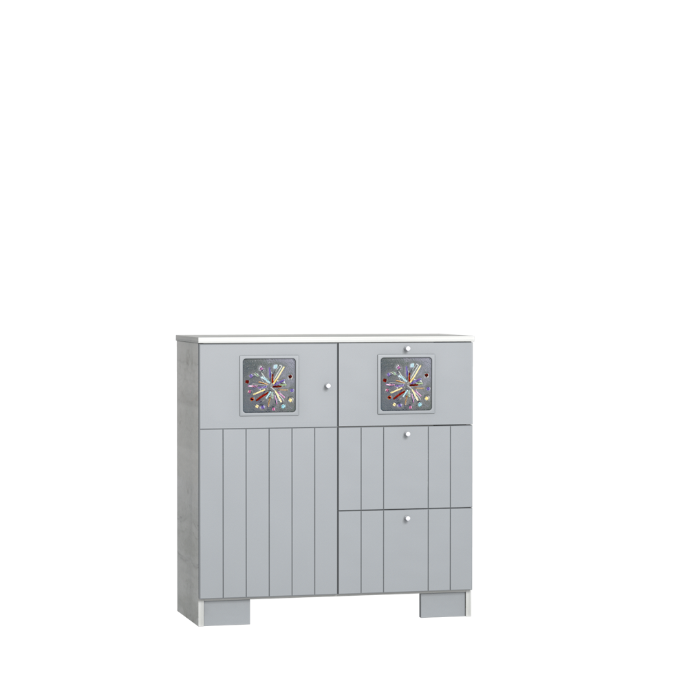 The Polar version of Kamilla flies us from the busy south to the snow-covered North. However, what the painted, soft Grey and light oak corpus provides you is not the cold of the landscape but the soft warmth of the Northern homes and their practical, cosy atmosphere.