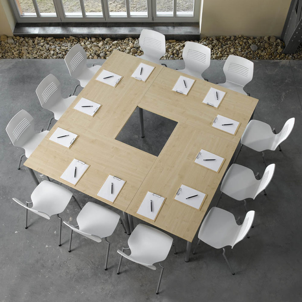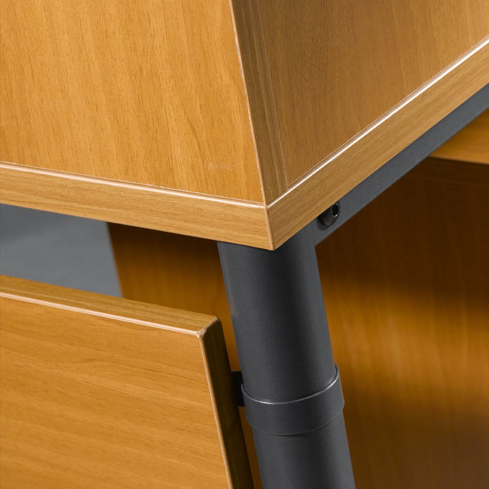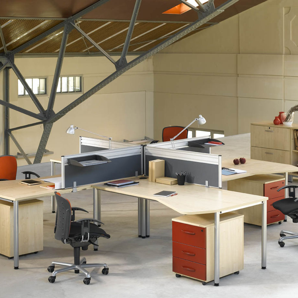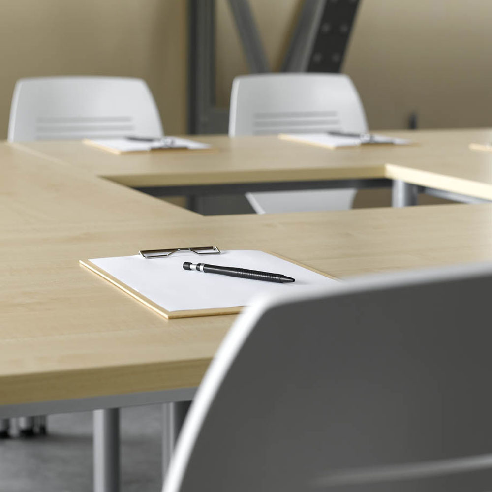We designed MetaOffice desks for workplaces where mainly teamwork is done. Administrative work processes are assisted by desk heightening counters and variable desk combination. Screens installed on desks, as well as the optional use of containers, make the appearance of an office diverse. The airy design enables unobstructed movement and freedom of space use. The curved indentations of tabletops almost “embrace” us, make us an integral part of the office and thus increase efficiency. Complementary elements assist cooperation and provide us with the feeling of mutual effort.