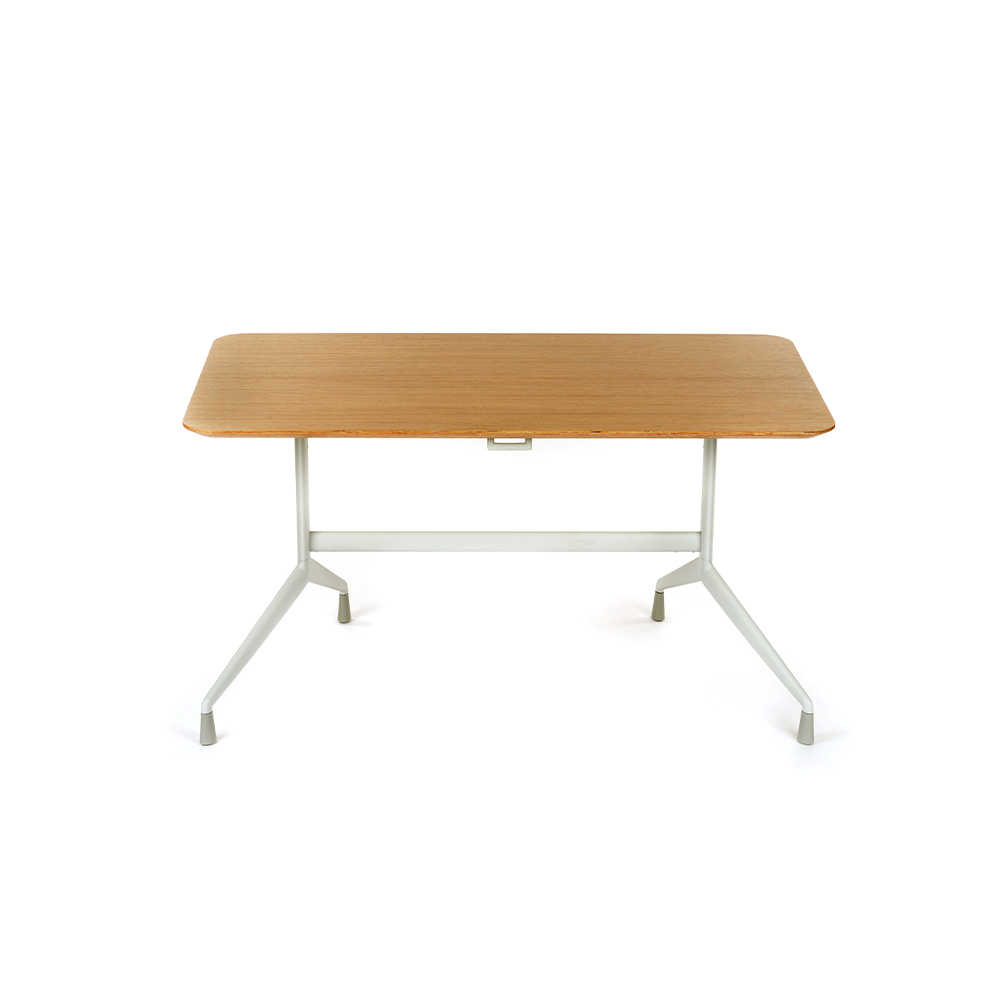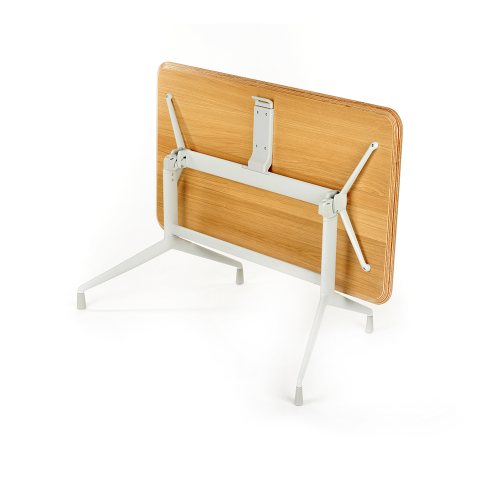 The Mothership Office tables, available in two sizes – 1400 × 800 mm and 1600 × 800 mm – offer an ideal setting for office areas both for domestic and contract environments. The tilting base allows mobility in the workspace and efficient storage of multiple desks.